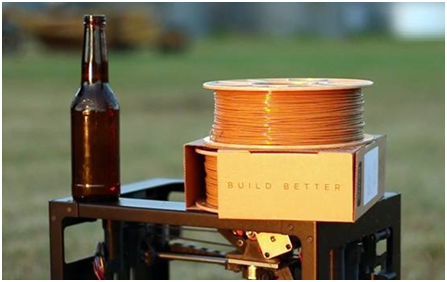 從食物到飲品,啤酒可謂功能多樣。美國(guó)纖維生產(chǎn)商3Dom,因其基于咖啡和麻的生物材料而著稱。最近他們研發(fā)了一種用啤酒制成的長(zhǎng)纖維。急速運(yùn)行的長(zhǎng)纖維有啤酒的天然色彩,主要原料是PLA和啤酒釀造過程中產(chǎn)生的廢渣。3D-Fuel上售賣的500g/卷長(zhǎng)纖維價(jià)格為39.99美元(約32英鎊)?,F(xiàn)在你能用啤酒來(lái)制作啤酒杯,這多么不可思議!
