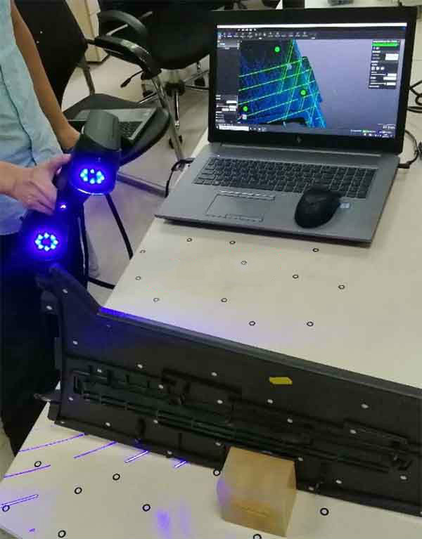 初次掃描耗時10分鐘,通過與原有測量技術(shù)檢測的數(shù)據(jù)結(jié)果比較,此檢測方案的檢測結(jié)果誤差值在0.02mm內(nèi),滿足客戶要求。在汽車配件改裝中,尺寸精度是影響產(chǎn)品質(zhì)量的重要因素,高精度的三維掃描設備是數(shù)據(jù)精確采集的保障。并且提高檢測效率能縮短汽車改裝周期。